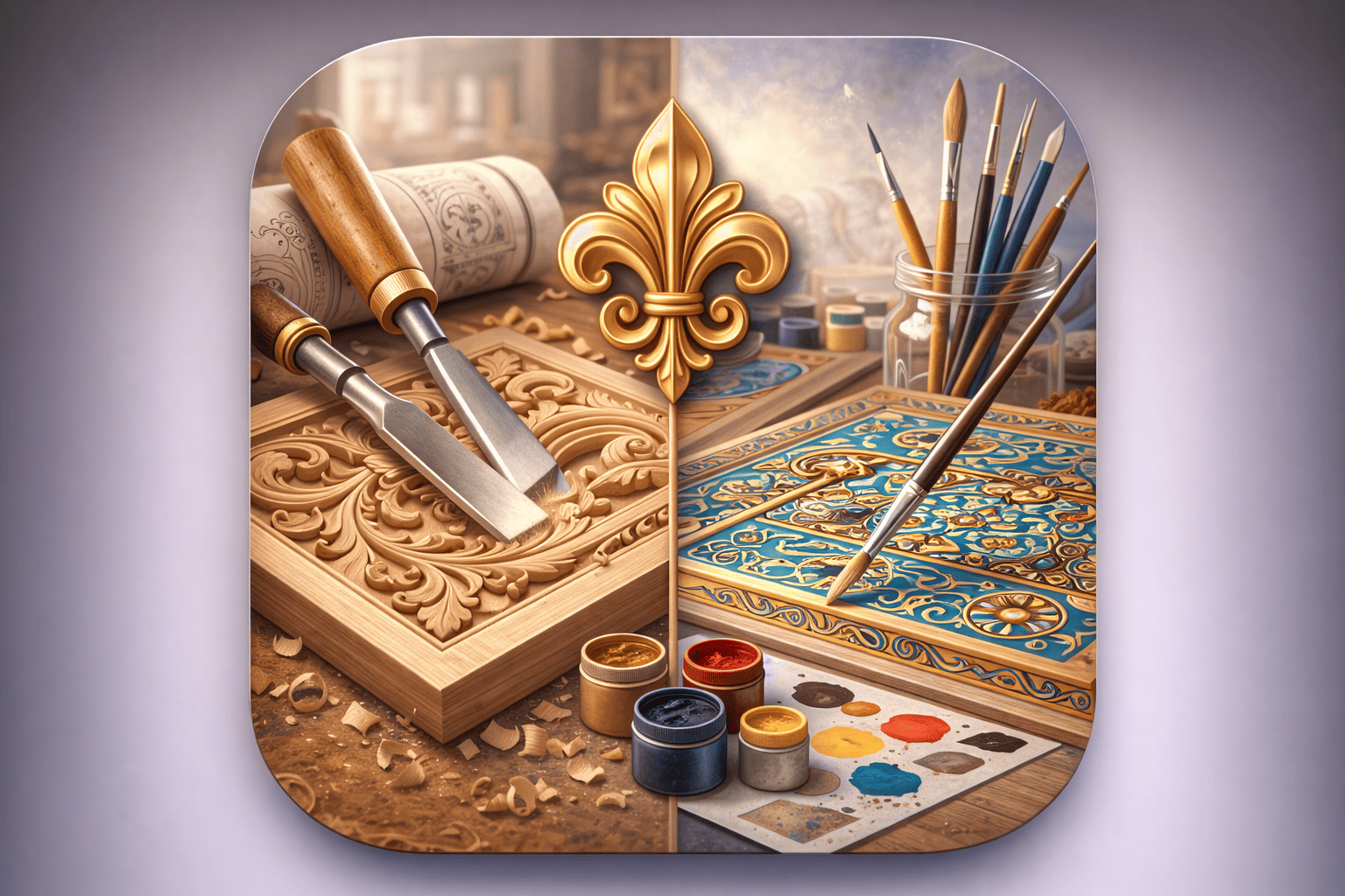 Conception de pièces décoratives sculptées uniques, réalisées à la main, alliant tradition, élégance et innovation.